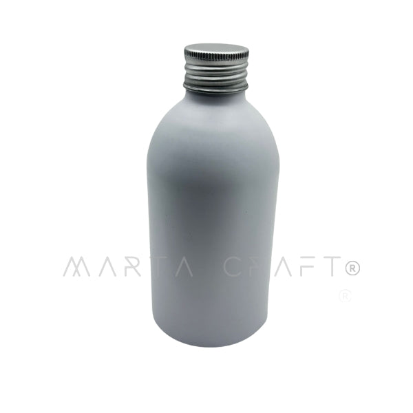 Frasco Garrafa Alumínio Branco 300 mL Baixo e Largo C/ Tampa Alumínio Boca 28